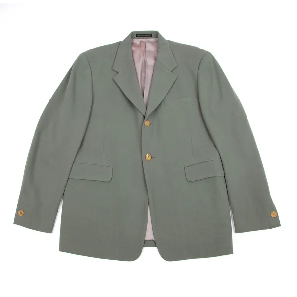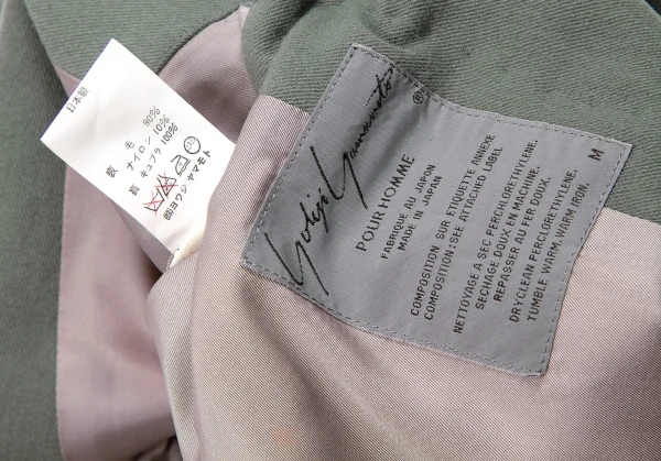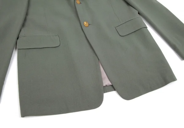 ヨウジヤマモト プールオムYohji Yamamoto POUR HOMMEウールナイロンノッチドラペル2Bジャケット グリーングレーM