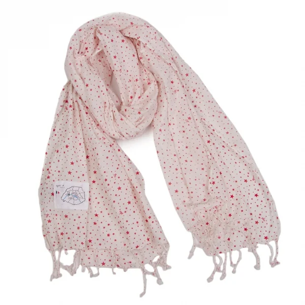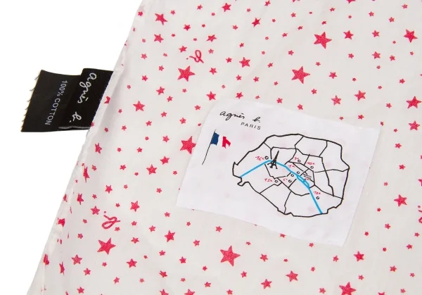 アニエスベーagnes b. 星柄コットンフリンジストール 白赤