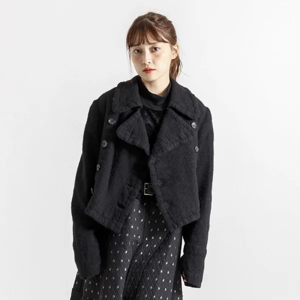 【最終値下げ】コムデギャルソンCOMME des GARCONS ウール縮絨ショートピーコート 黒S