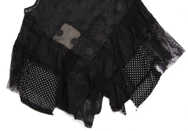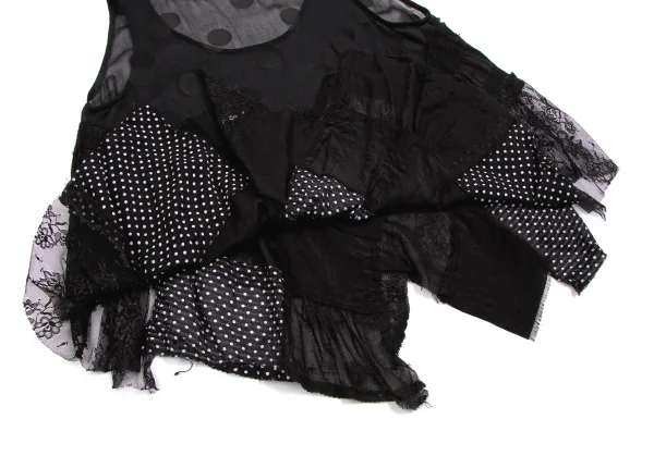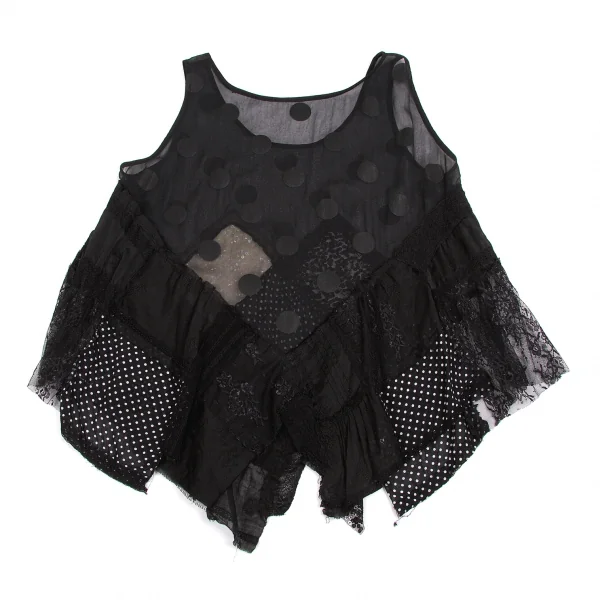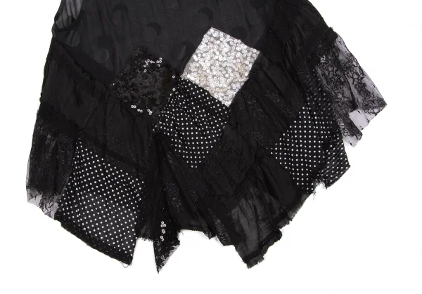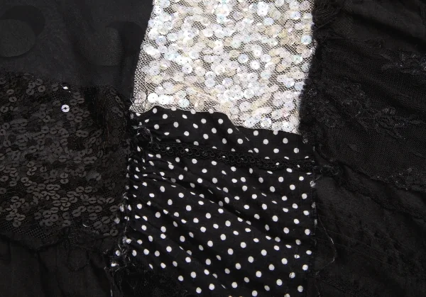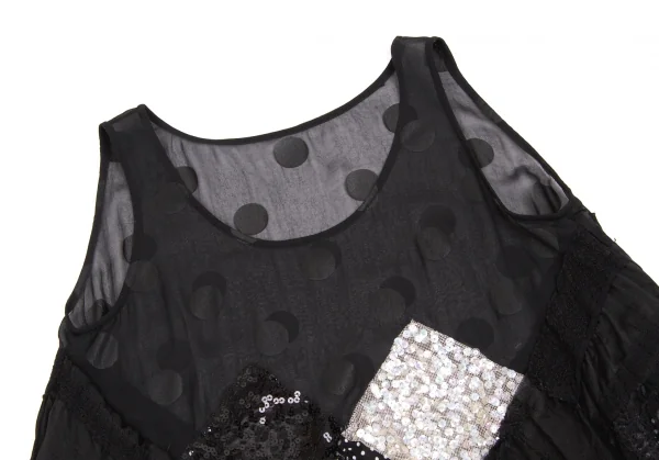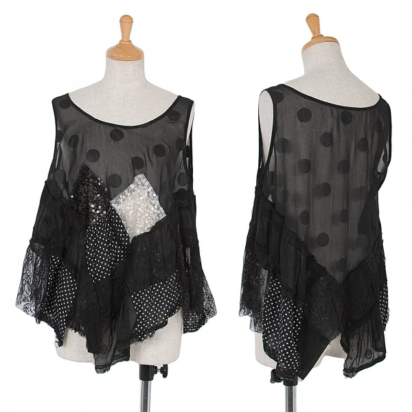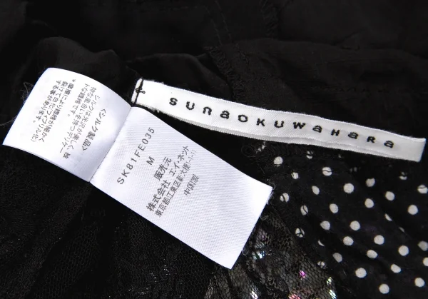 スナオクワハラsunaokuwahara スパンコールパッチワークドットシースルーノースリーブ 黒M