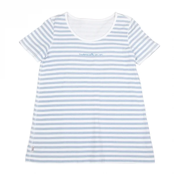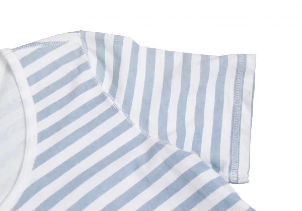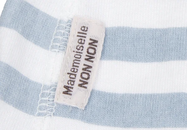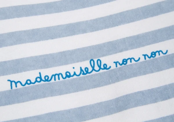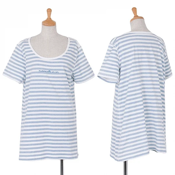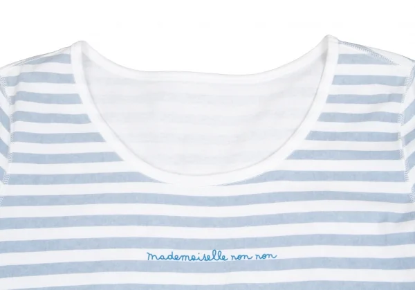 マドモアゼルノンノンMademoiselle NON NON ロゴプリントボーダー半袖Tシャツ 水色白38M