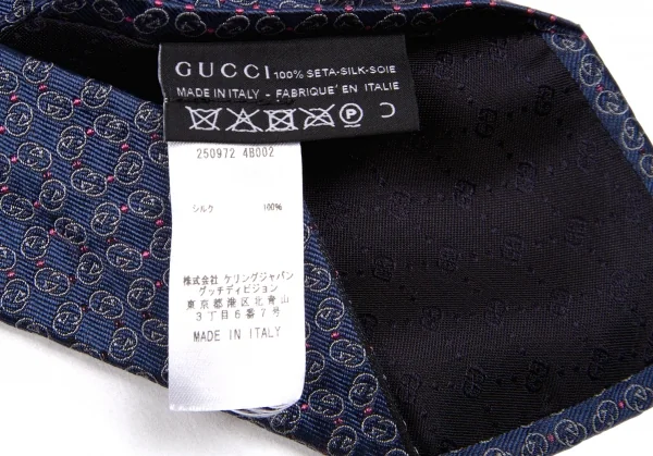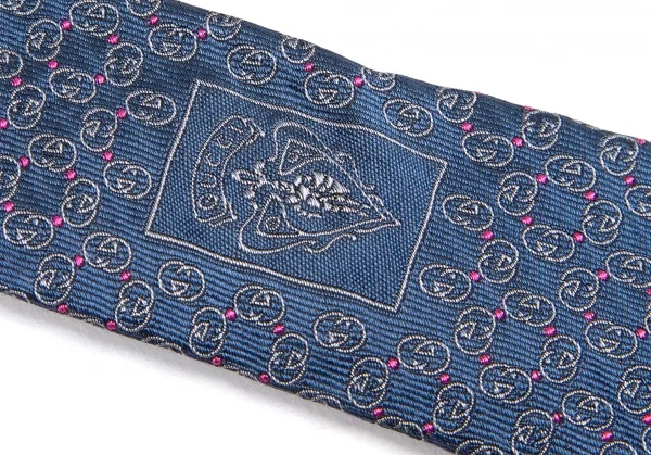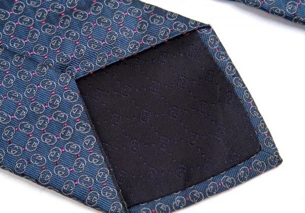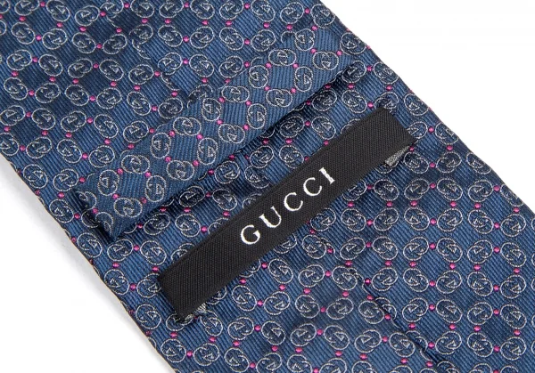 【SALE】グッチGUCCI GG柄シルクネクタイ 紺ピンク