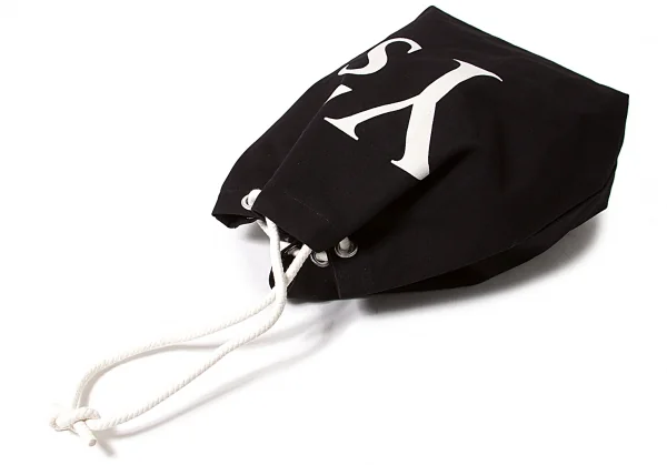 ワイズY's ノベルティロゴプリントキャンバス巾着バッグ 黒