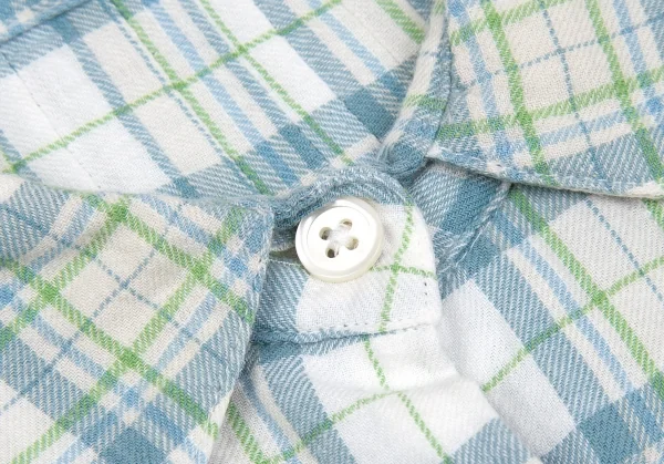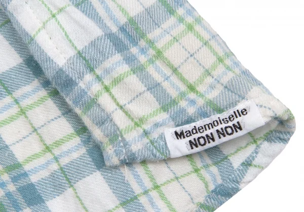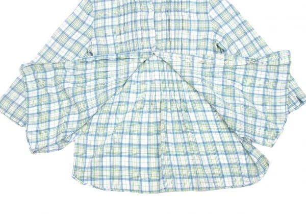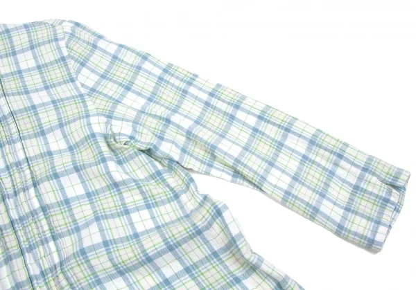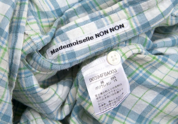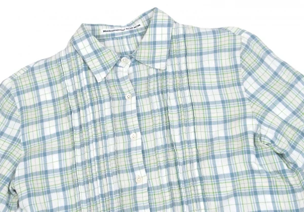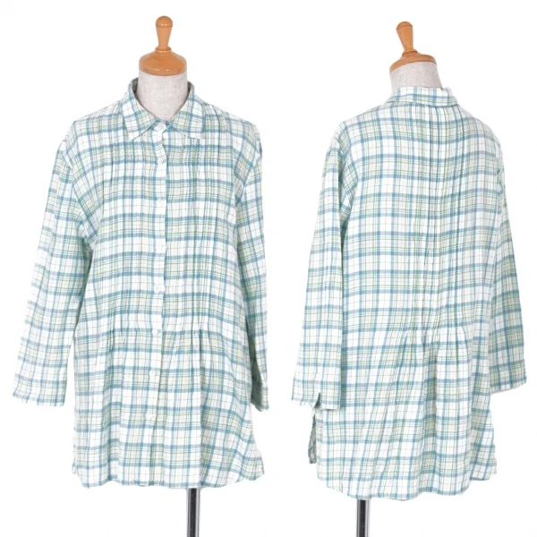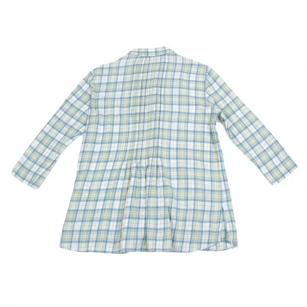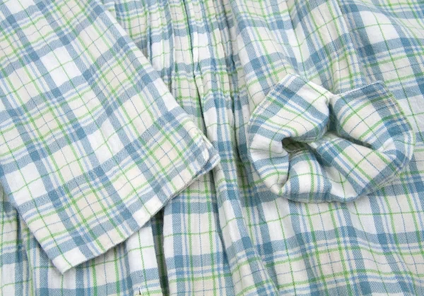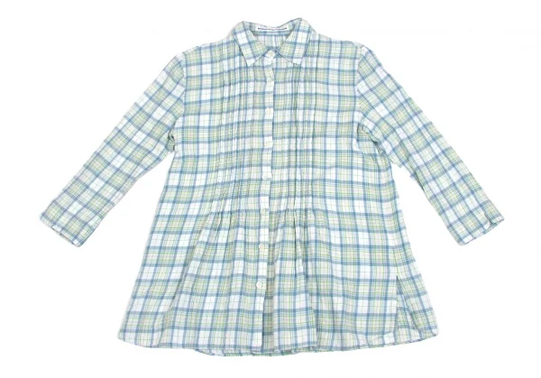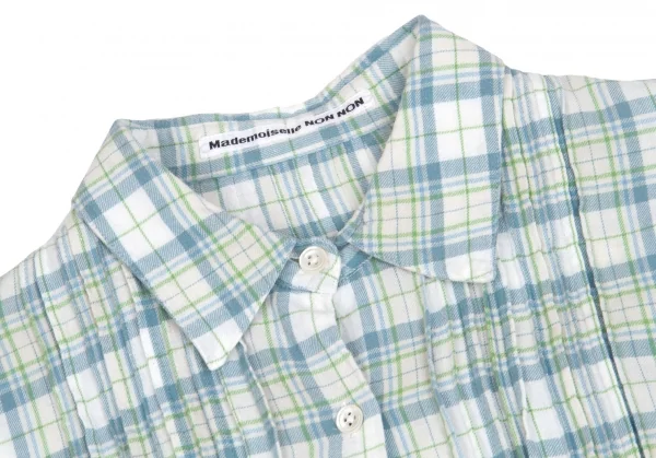 マドモアゼルノンノンMademoiselle NON NON コットンセンタープリーツチェックシャツ オフ緑青M位