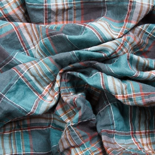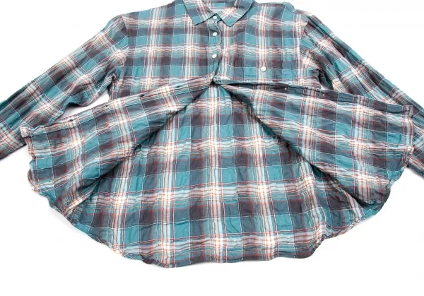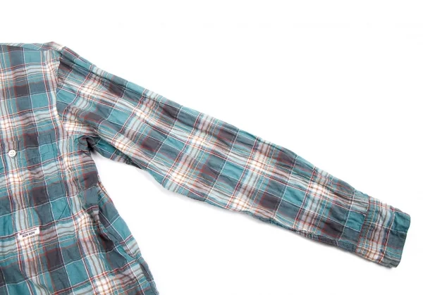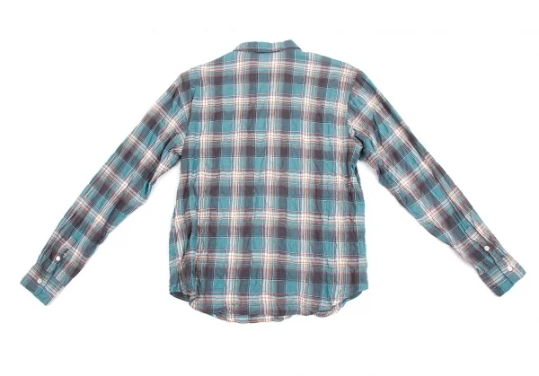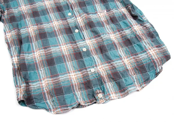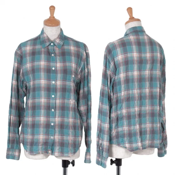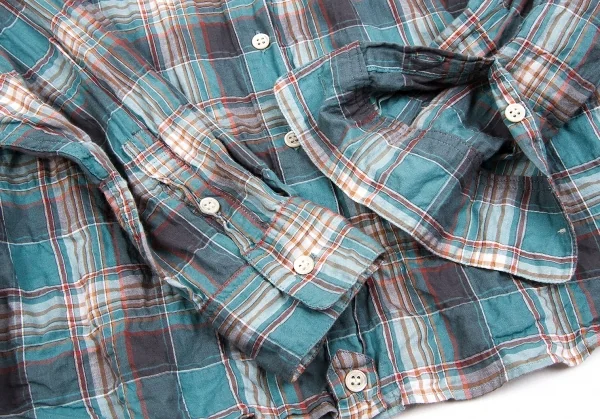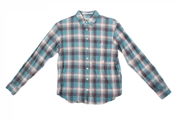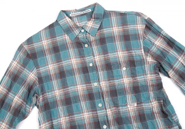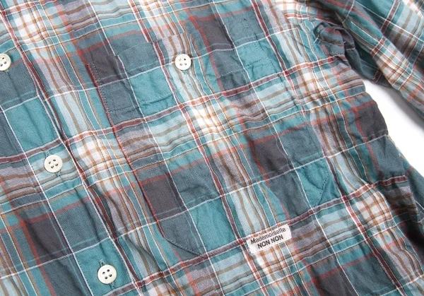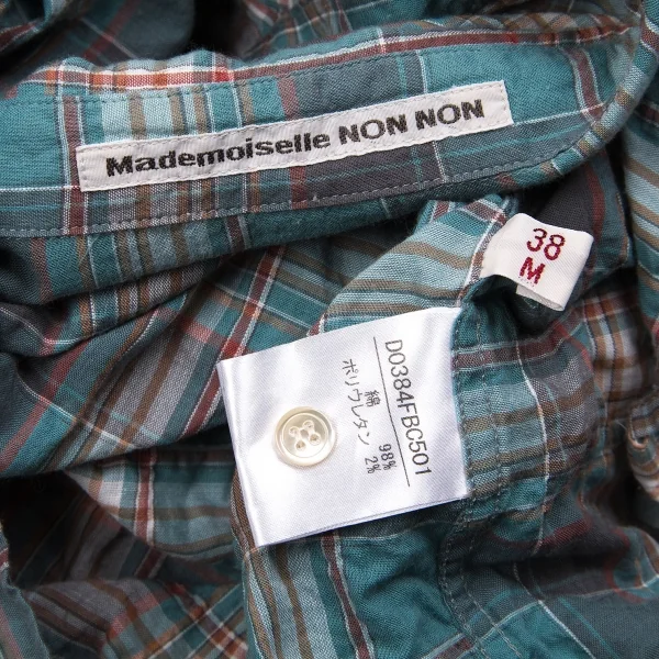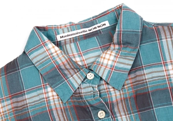 【最終値下げ】マドモアゼルノンノンMademoiselle NON NON コットンワッシャーチェックシャツ ブルー茶オフ他38M