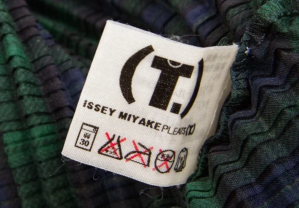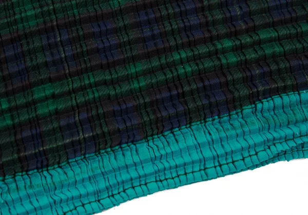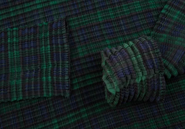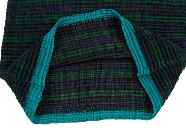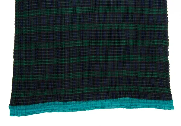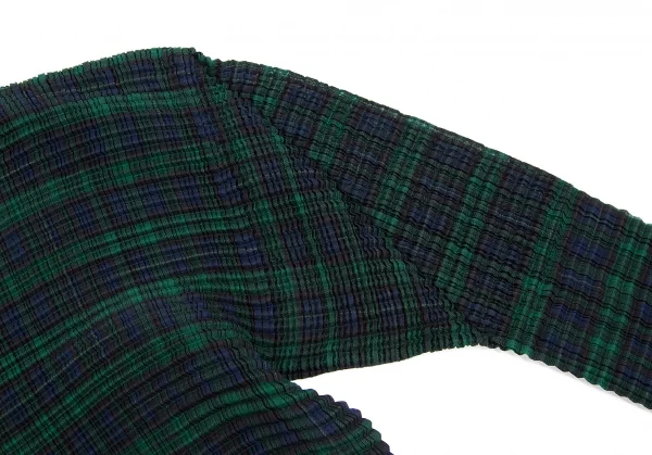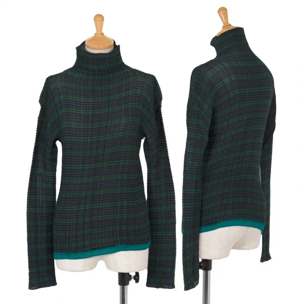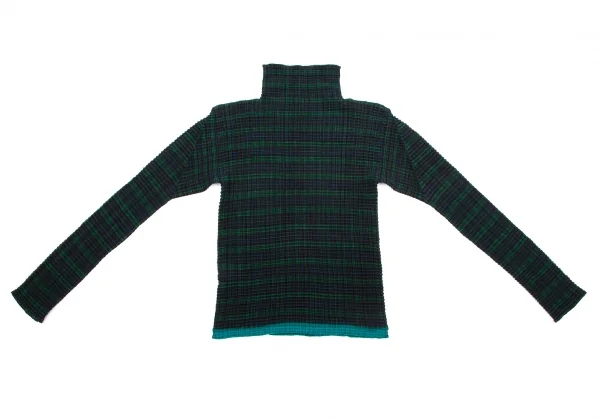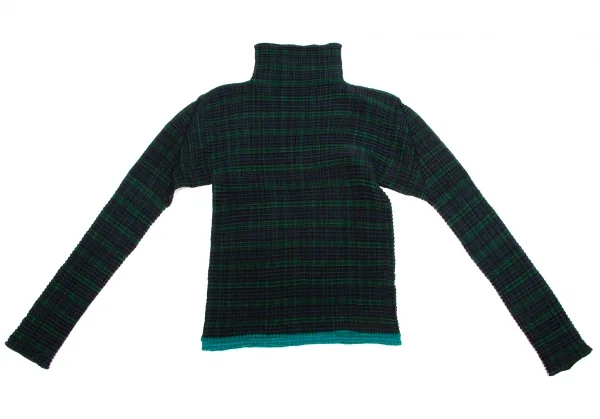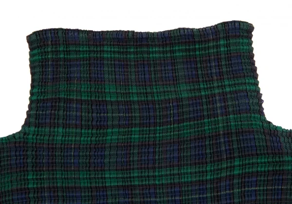 イッセイミヤケISSEY MIYAKE(T.) ブラックウォッチハイネックプリーツカットソー グリーン青紺他M