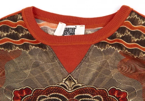 ゴルチエトゥーザパワーオブトゥーGAULTIER2 ウールグラフィックプリントカットソー レンガ茶他S