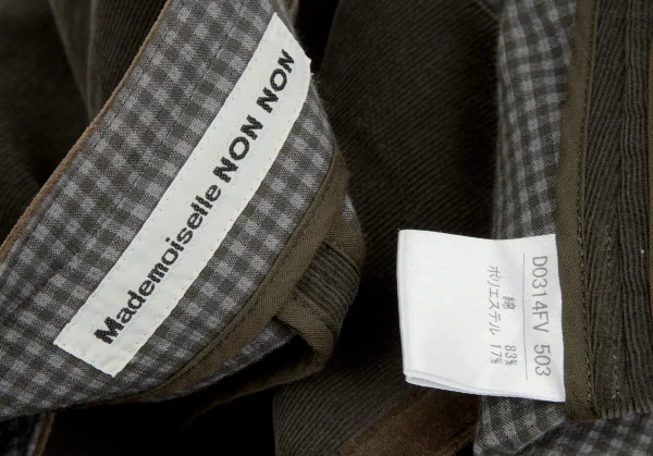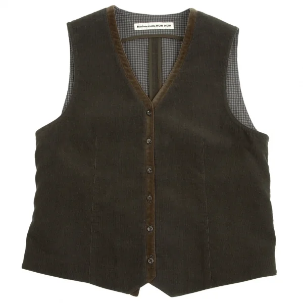 【SALE】マドモアゼルノンノンMademoiselle NON NON 裏チェックコーデュロイベスト グレーカーキM位
