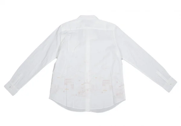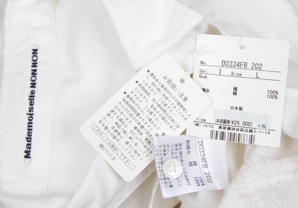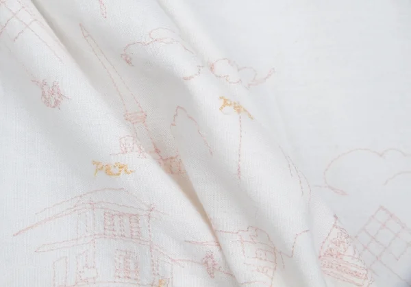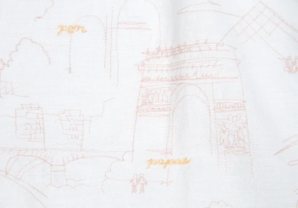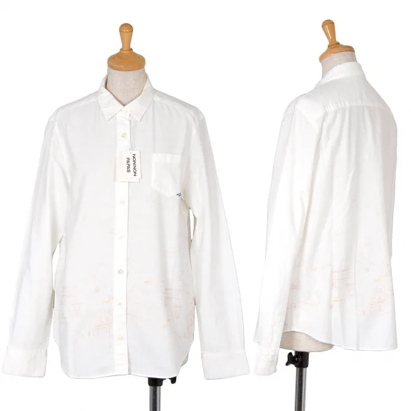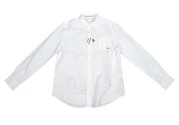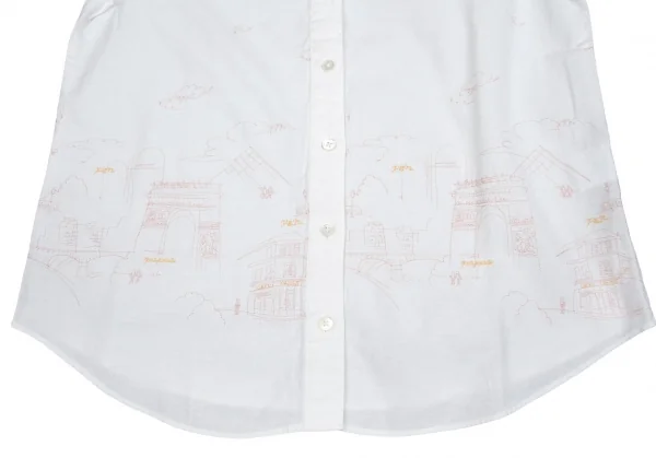 新品!マドモアゼルノンノンMademoiselle NON NON コットン町並み刺繍シャツ 白ピンク黄40L