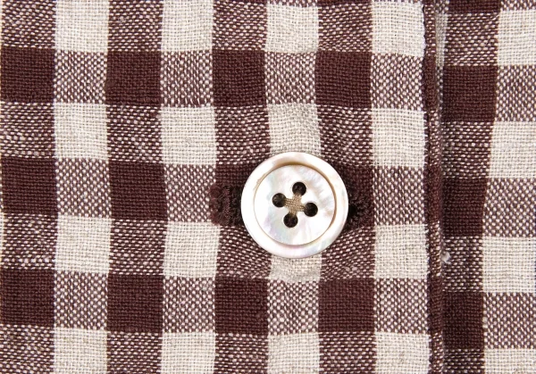 【SALE】マドモアゼルノンノンMademoiselle NON NON リネンギンガムチェックジレ 茶ベージュ38M