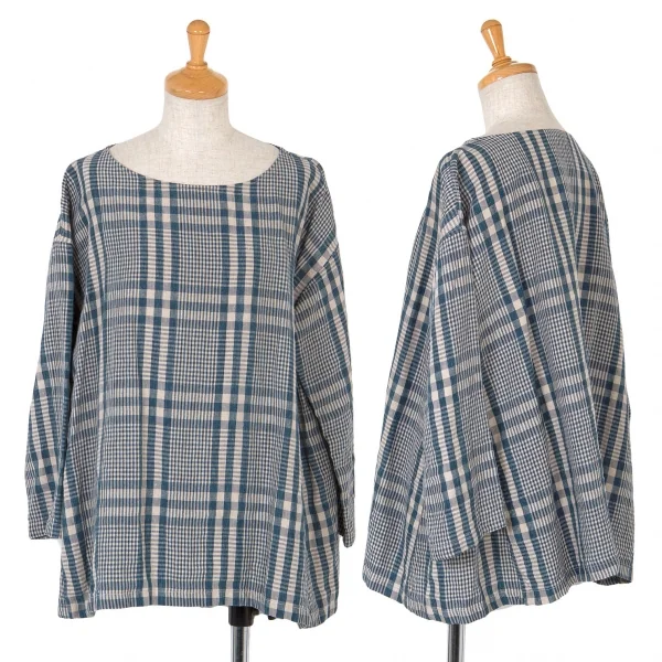 45rpm リネンオーバーチェックチュニック ベージュ紺0