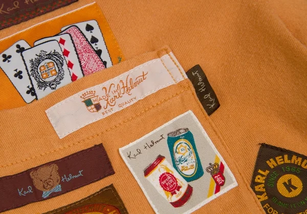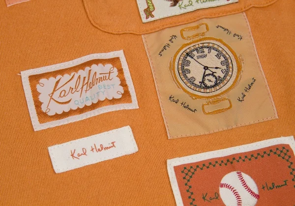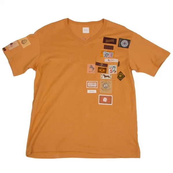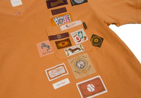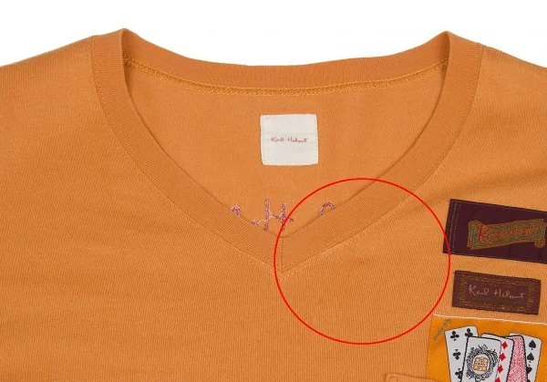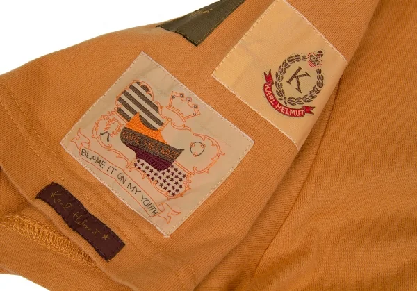 【SALE】カールヘルムKarl Helmut VネックワッペンTシャツ 淡オレンジ他L