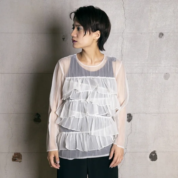 【SALE】トリコ コムデギャルソンtricot COMME des GARCONS シースルーティアードシャツ オフM位