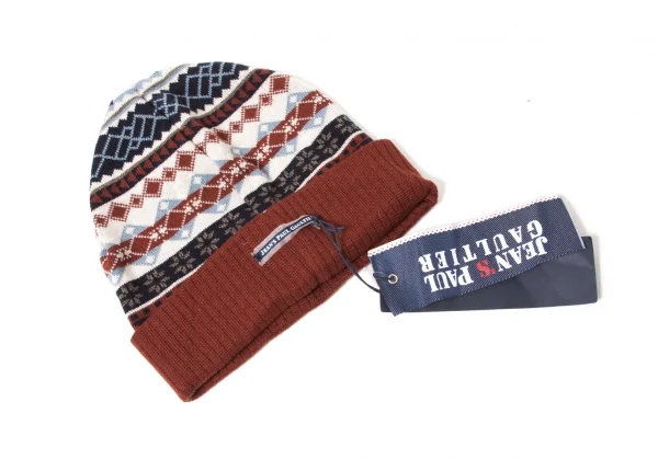 ジーンズポールゴルチエjean's Paul GAULTIER ノルディック柄ニットキャップ 茶白ST