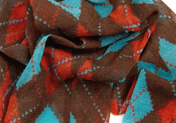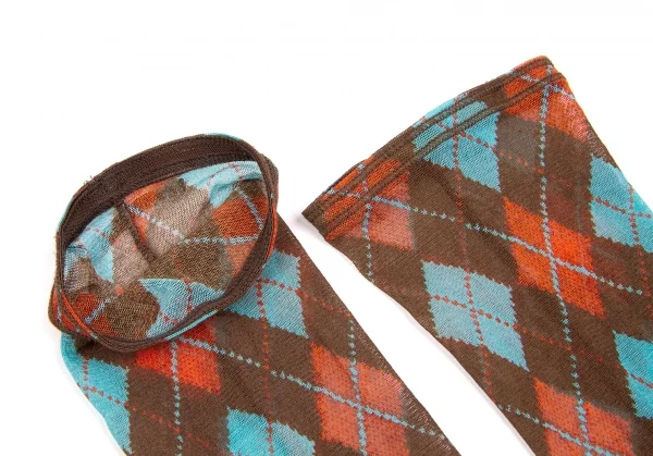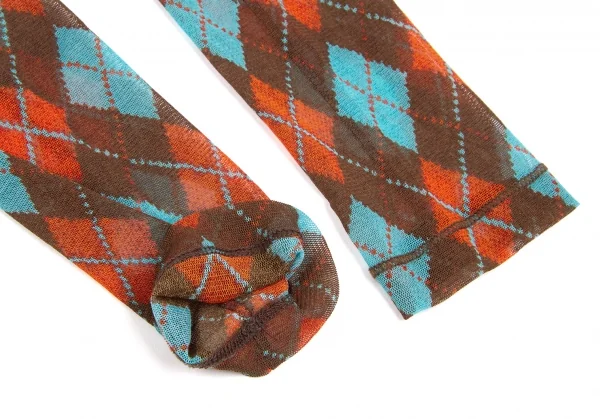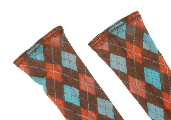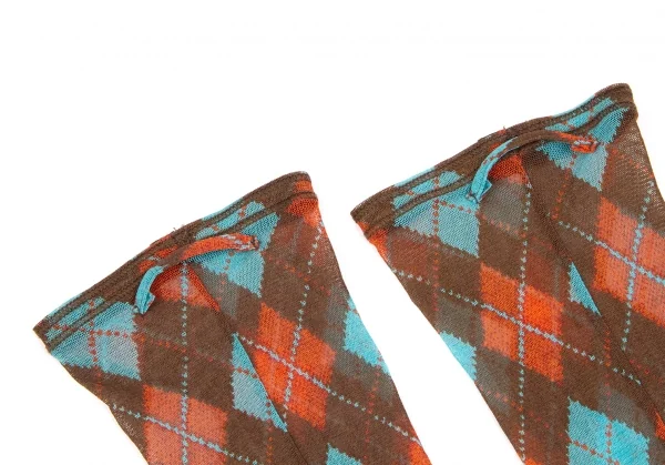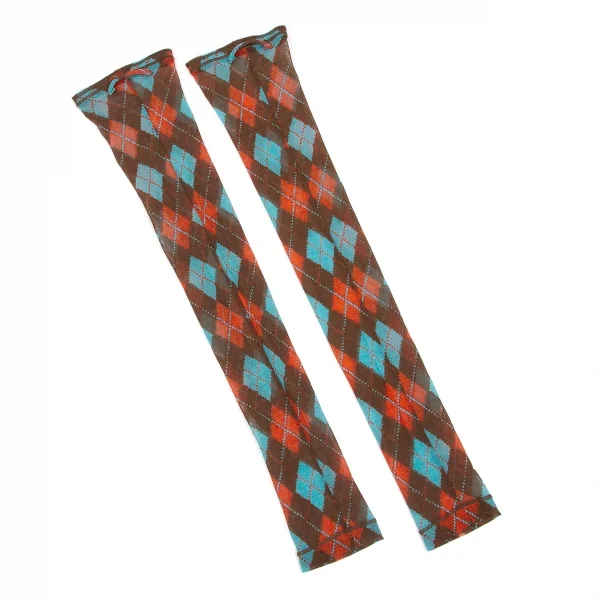 ジャンポールゴルチエ ファムJean Paul GAULTIER FEMME パワーネットアーガイルチェックアームカバー 赤茶水色