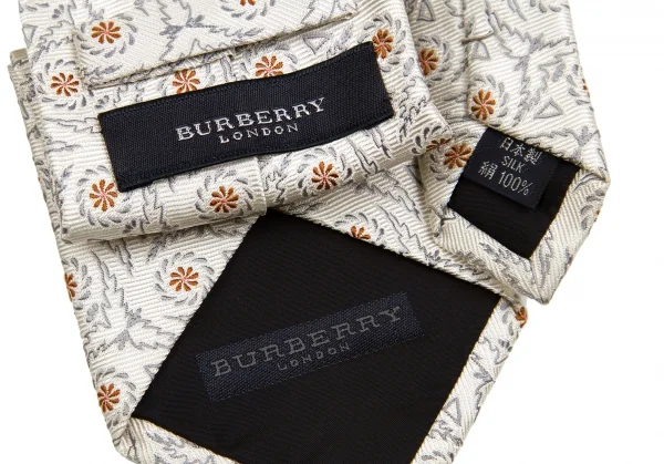 【SALE】バーバリー ロンドンBURBERRY LONDON シルクネクタイ 白グレー茶