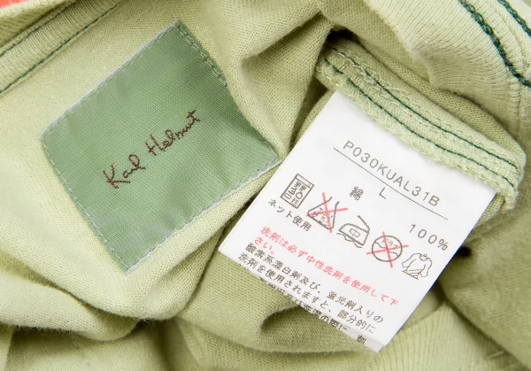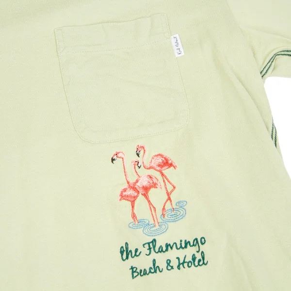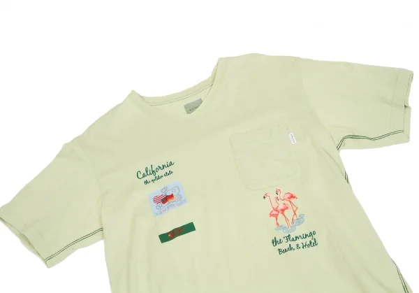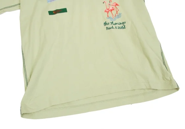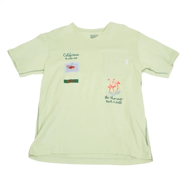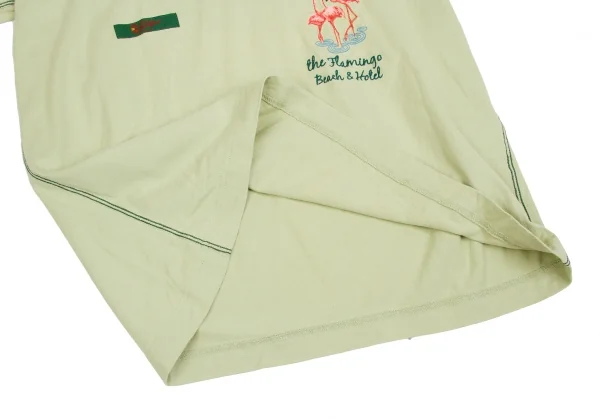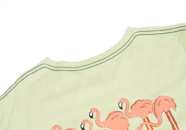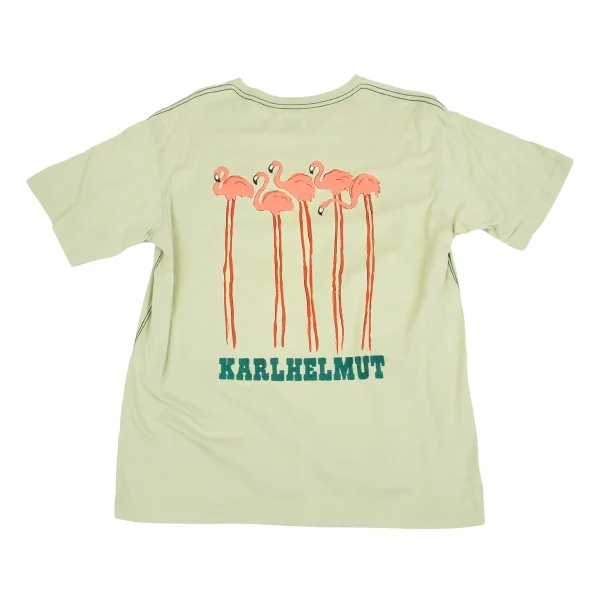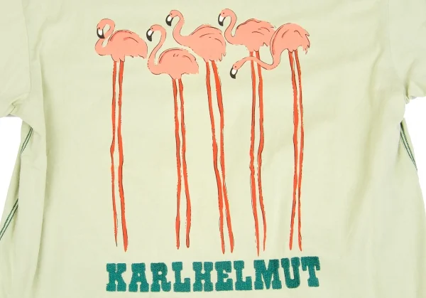 カールヘルムKarl Helmut フラミンゴ顔料プリント&刺繍VネックTシャツ 淡緑L