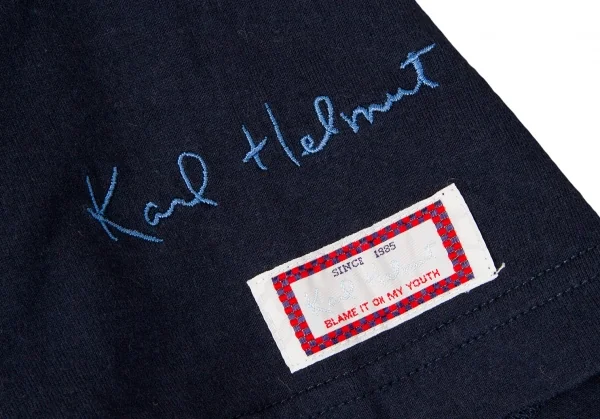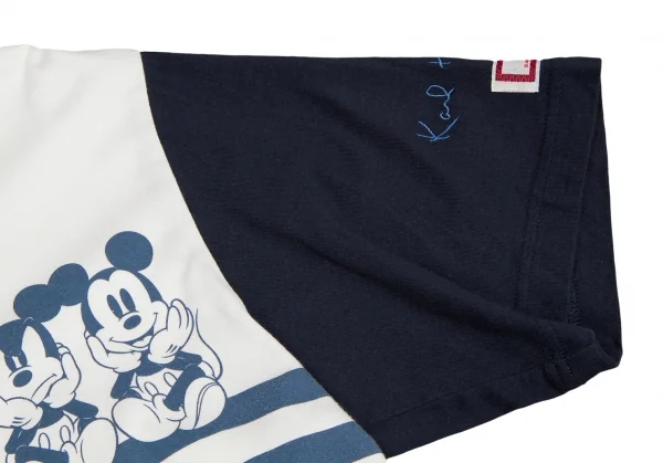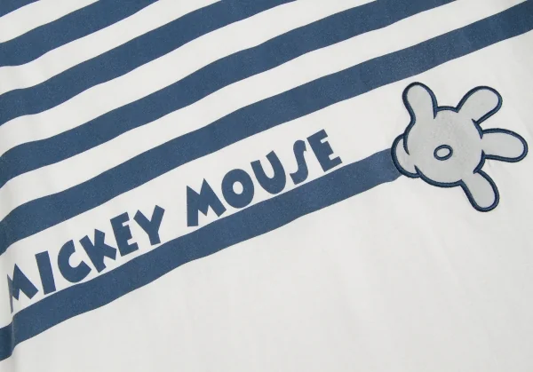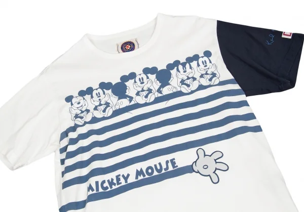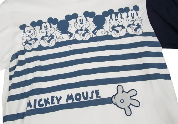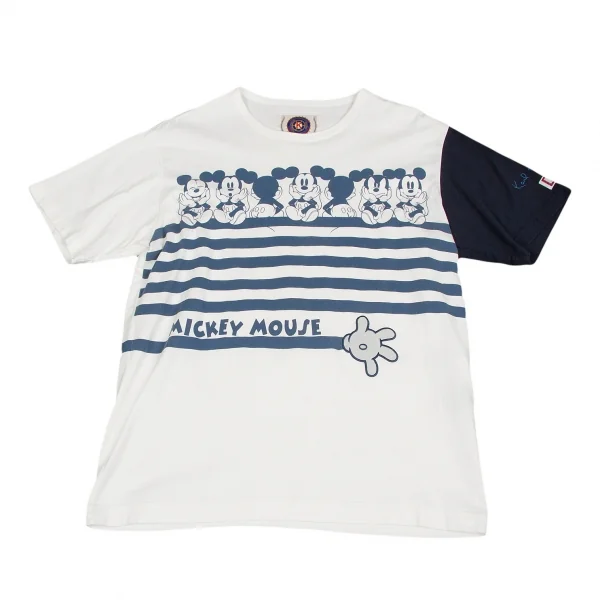 カールヘルムKarl Helmut ミッキーマウス顔料プリントボーダーTシャツ 白濃淡紺L