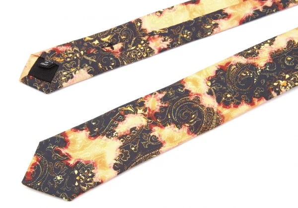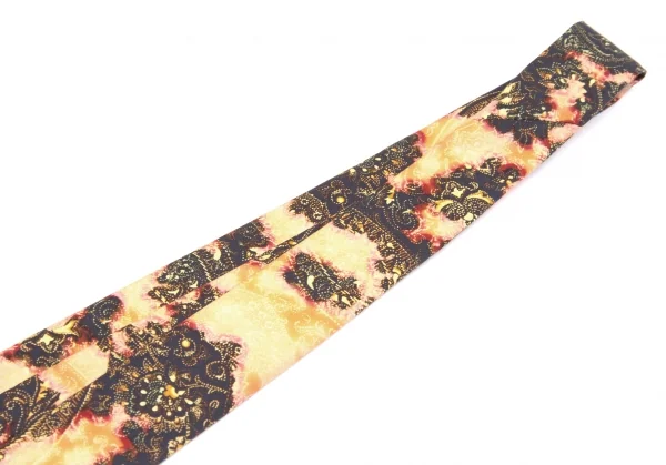 ジャンポールゴルチエオムJean Paul GAULTIER HOMME ブリーチアウトペイズリーコットンナローネクタイ ピンク黒