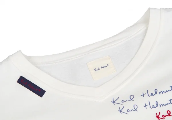 カールヘルムKarl Helmut ブランドロゴプリントシンプルVネックTシャツ オフ他L