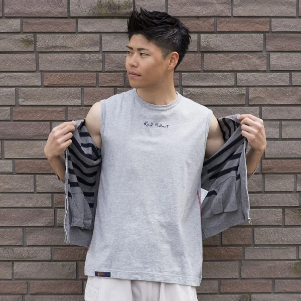 【最終値下げ】カールヘルムKarl Helmut 前後ロゴ刺繍タンクトップ 杢グレーL