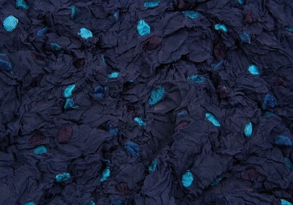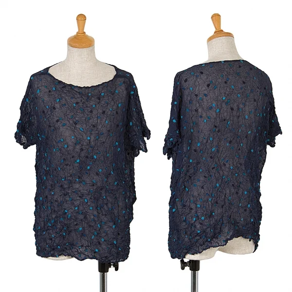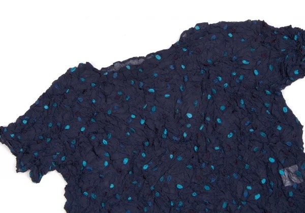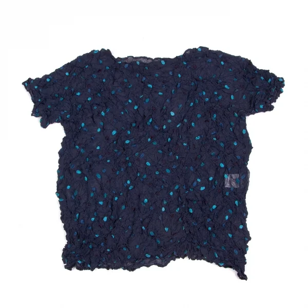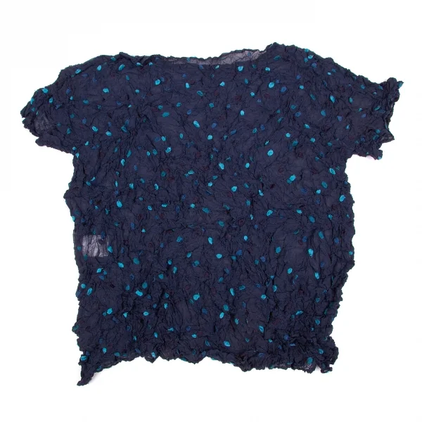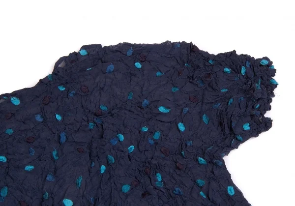 イッセイミヤケ ペルマネンテISSEY MIYAKE PERMANENTE オーバルドット刺繍シワ加工トップス 紺2