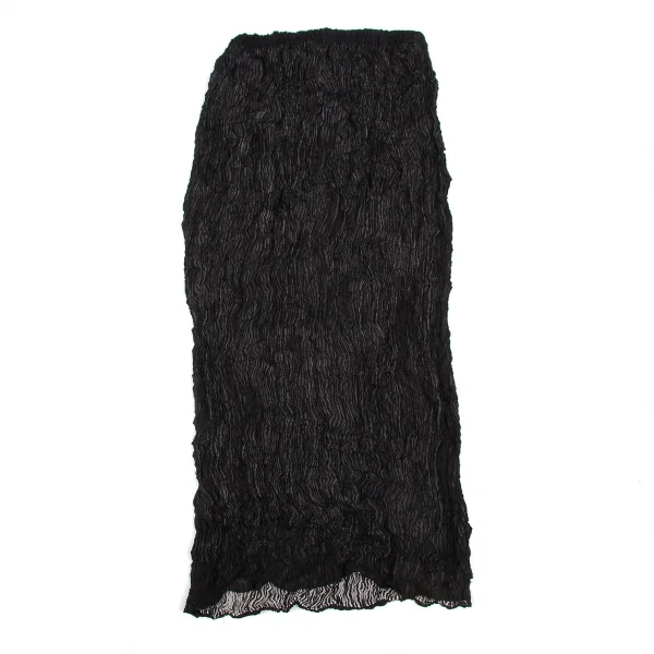 イッセイミヤケISSEY MIYAKEストライプレイヤードシワ加工プリーツロングスカート 白黒M