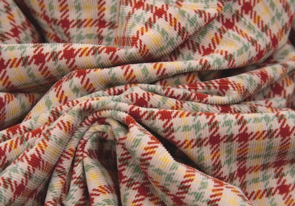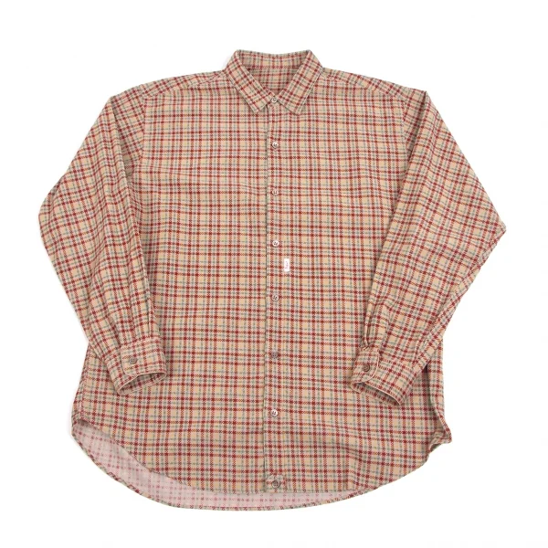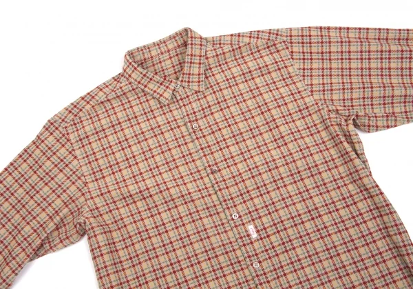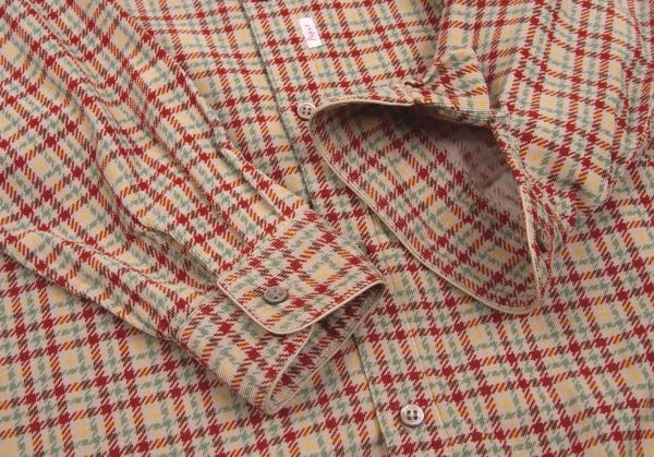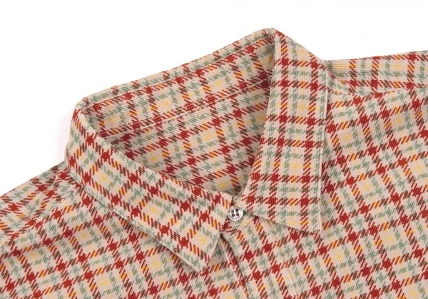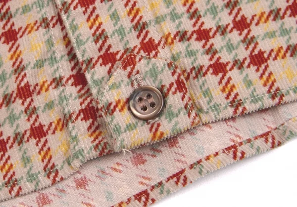 【SALE】パパスPapas コーデュロイチェックシャツ ベージュエンジ緑他M