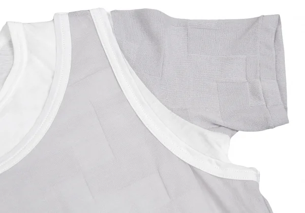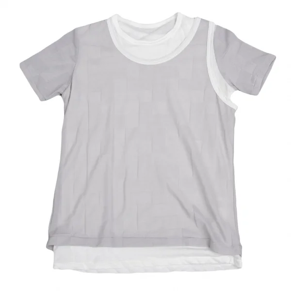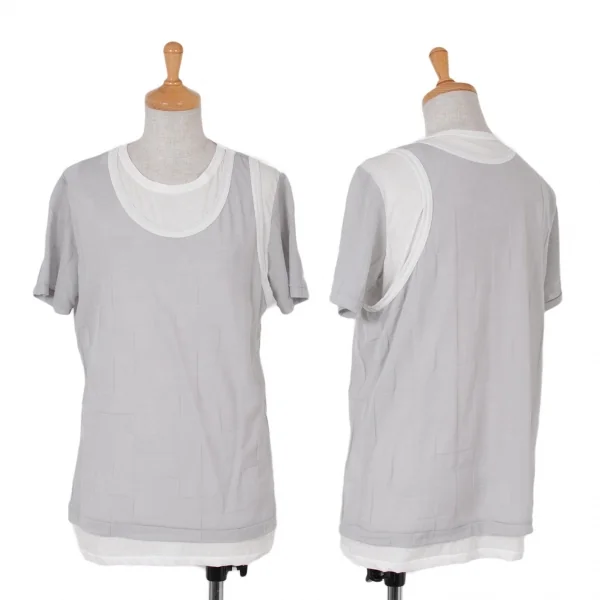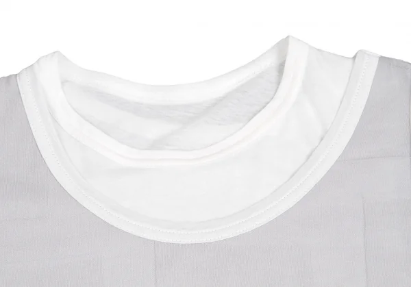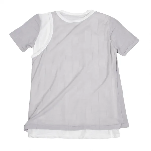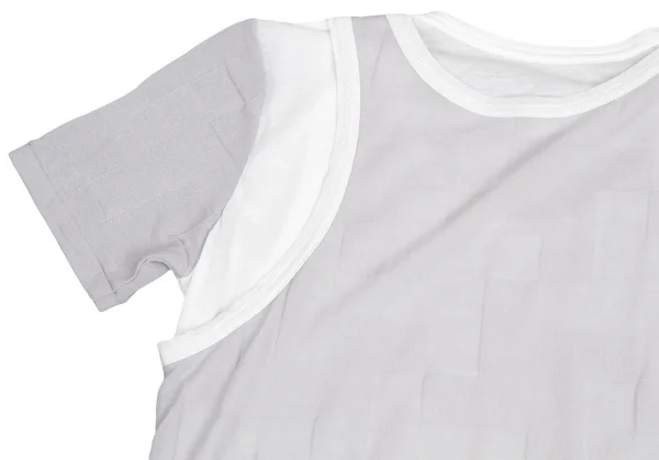 【SALE】ヨウジヤマモト ノアールYohji Yamamoto NOIR ブロックエンボスレイヤードデザインTシャツ グレー白2