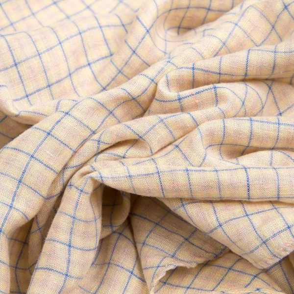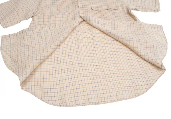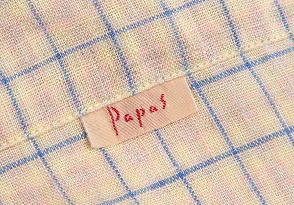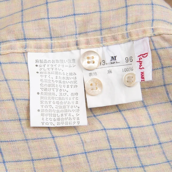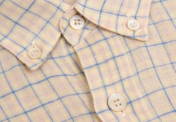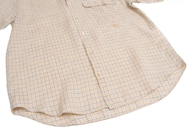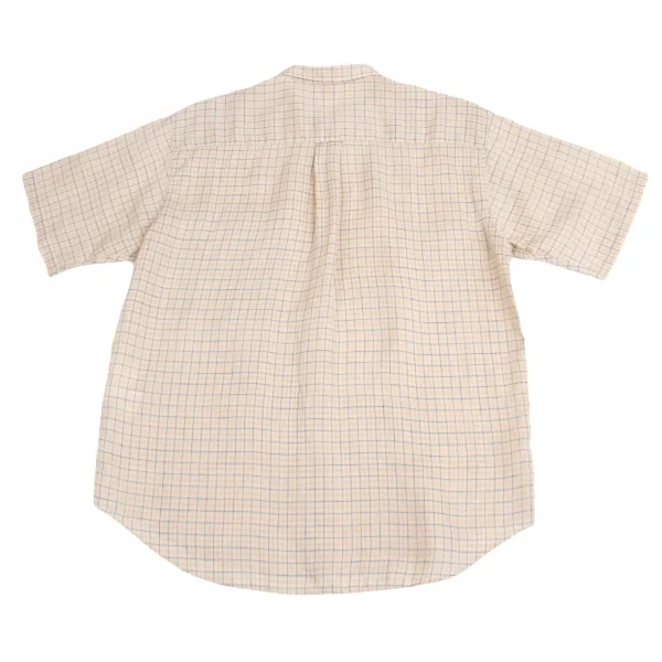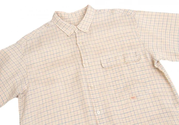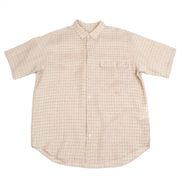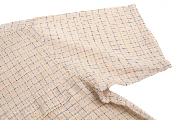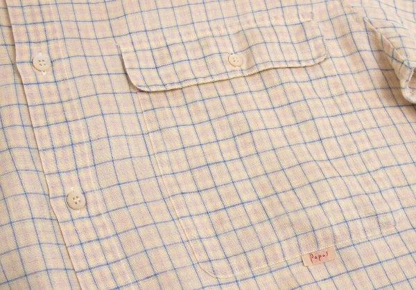 パパスPapas リネンチェックボタンダウン半袖シャツ ベージュ青M