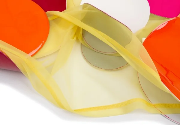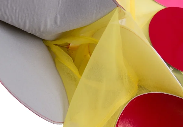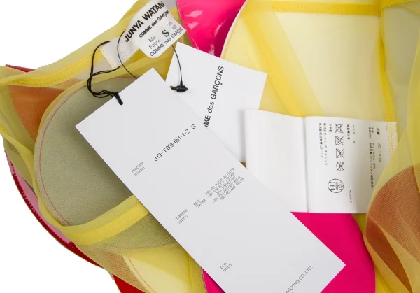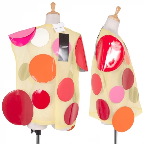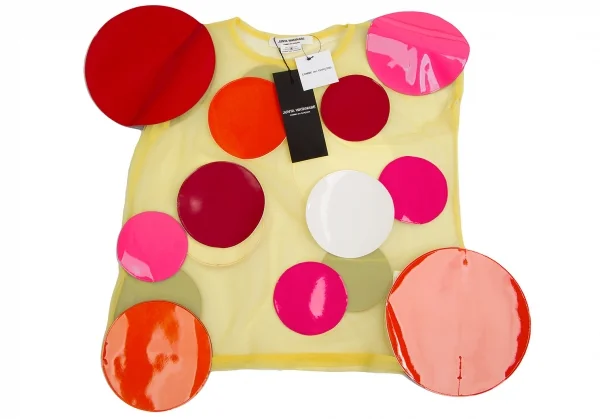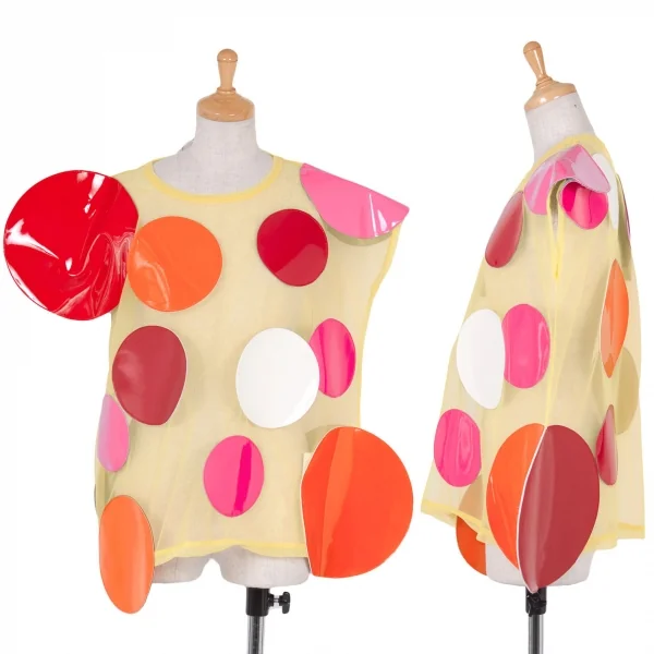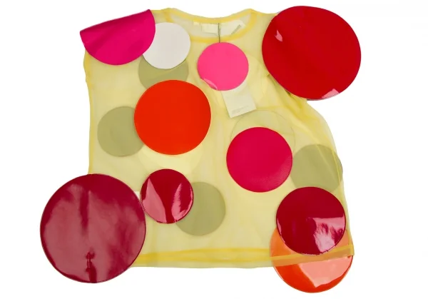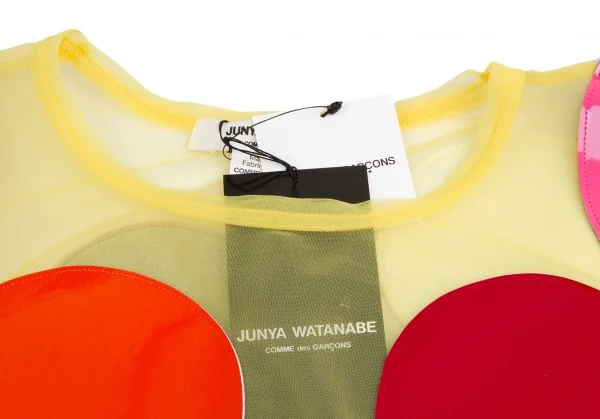 ジュンヤワタナベコムデギャルソンJUNYA WATANABE COMME des GARCONS ドットフェイクレザーパッチチュールノースリーブ 黄赤他S