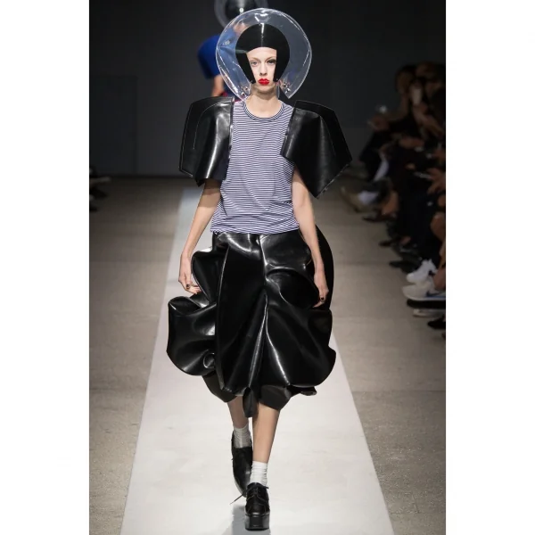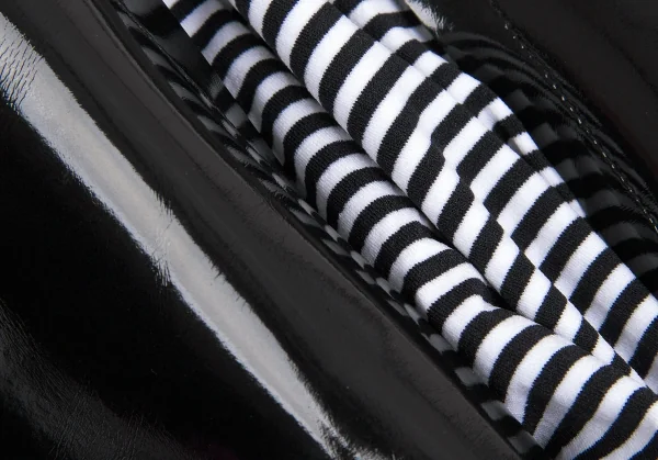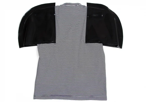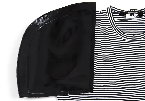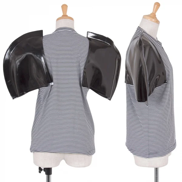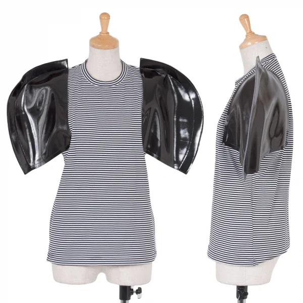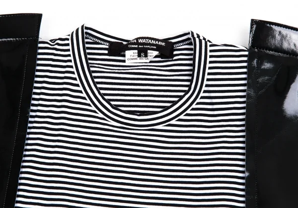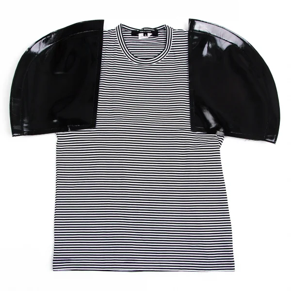 ジュンヤワタナベ コムデギャルソンJUNYA WATANABE COMME des GARCONSフェイクレザーショルダーボーダーカットソー 黒白M