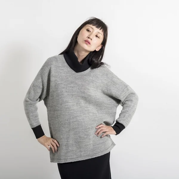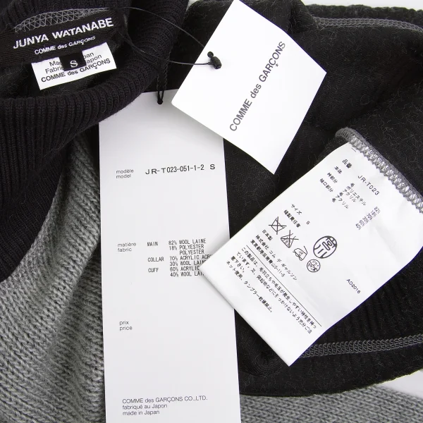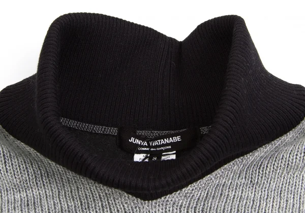 【SALE】ジュンヤワタナベ コムデギャルソンJUNYA WATANABE COMME des GARCONS ハイネックリブ切替ニット 杢グレー黒S