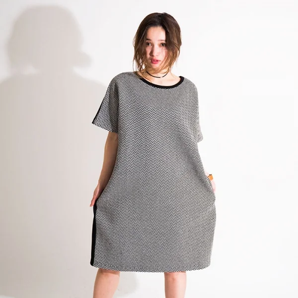 【SALE】ジュンヤワタナベ コムデギャルソンJUNYA WATANABE COMME des GARCONS ジグザグ柄切替ビッグシルエットワンピース 黒白S