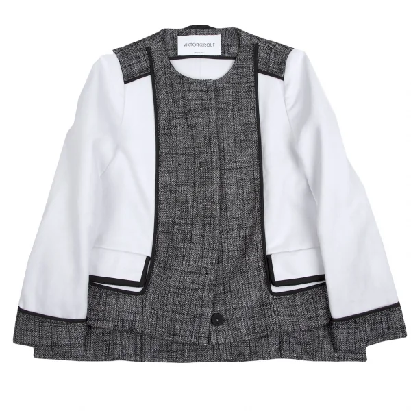 ヴィクター&ロルフVIKTOR&ROLF リバースデザインツイードシャネルジャケット 白黒M位