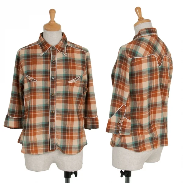 【SALE】キャピタルKAPITAL コットンチェックウエスタンシャツ ベージュ他1