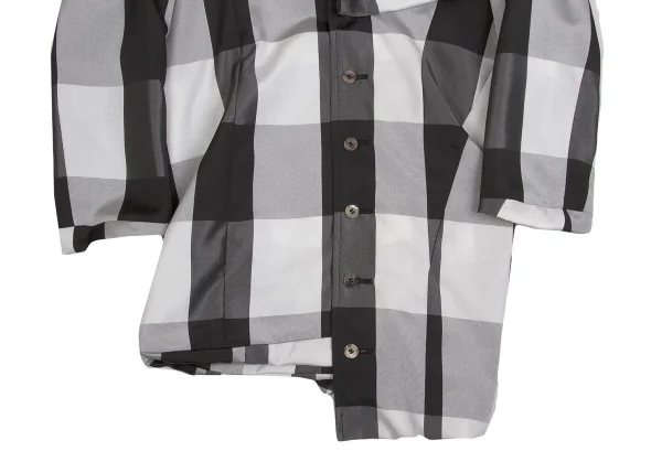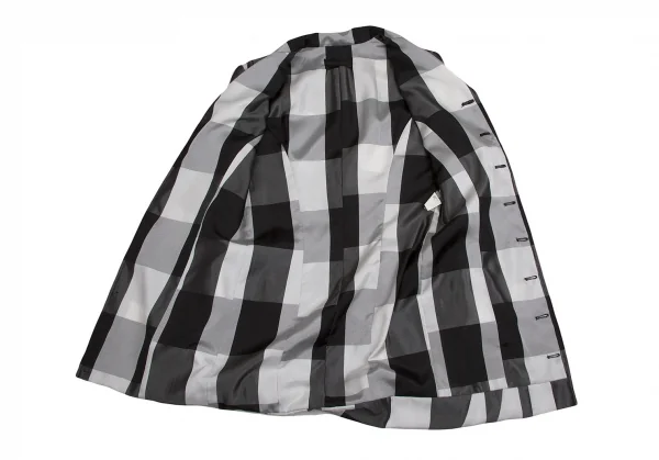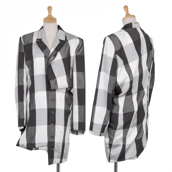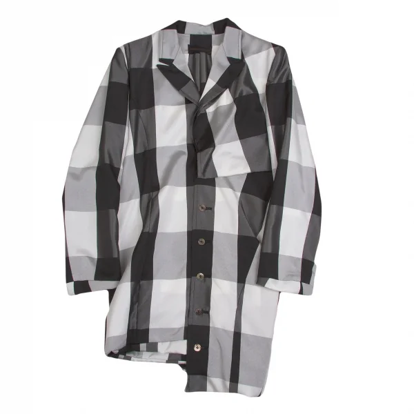 【SALE】コムデギャルソンCOMME des GARCONSポリブロックチェックレイヤードロングジャケット 白灰黒M