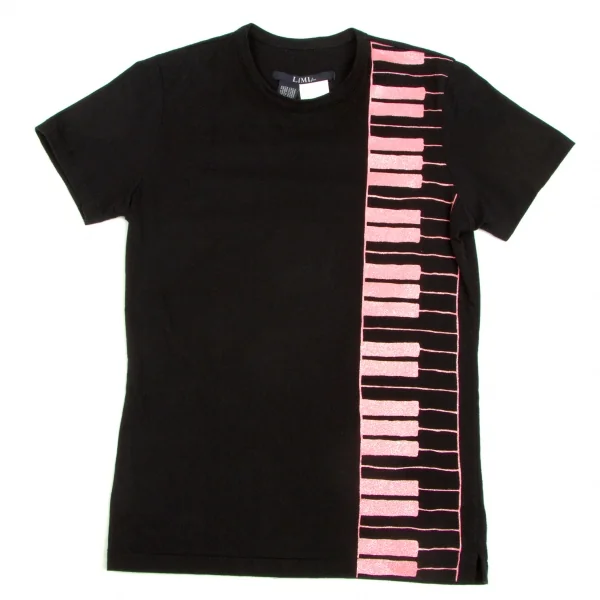 【SALE】リミフゥLIMI feu 鍵盤ラメプリントTシャツ 黒ピンクS