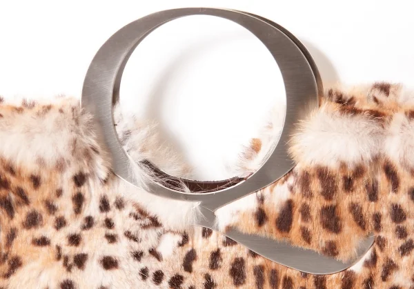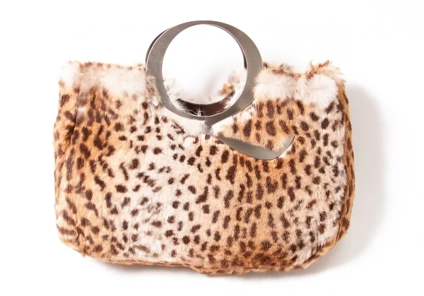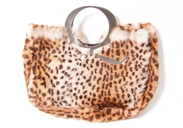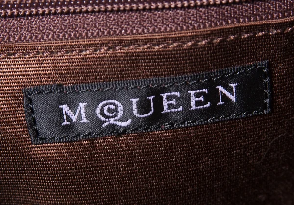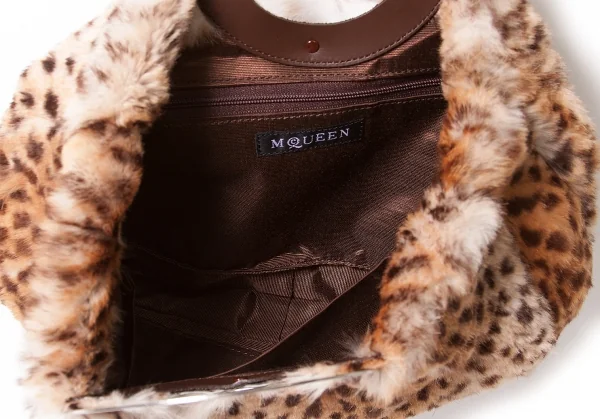 アレキサンダーマックイーン Alexander McQUEEN メタルハンドルレオパードミニトートバッグ 茶ベージュ