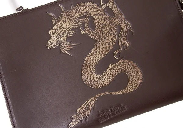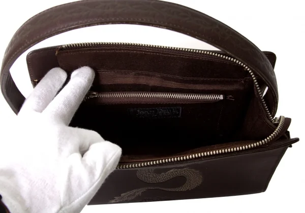 ジャンポールゴルチエJean Paul GAULTIER 龍型押しハンドバッグ 茶