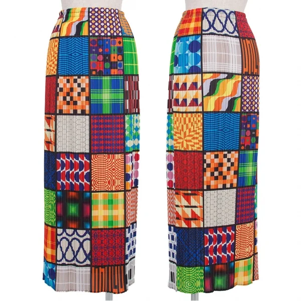 プリーツプリーズPLEATS PLEASE カラフル幾何学プリントスカート マルチ3