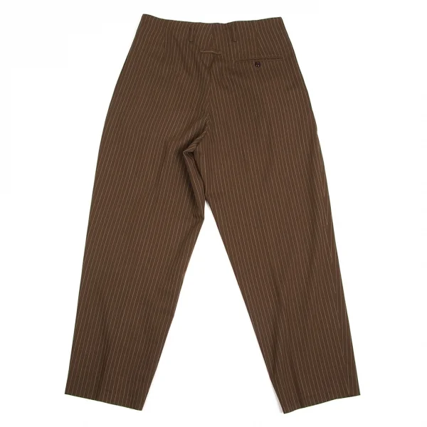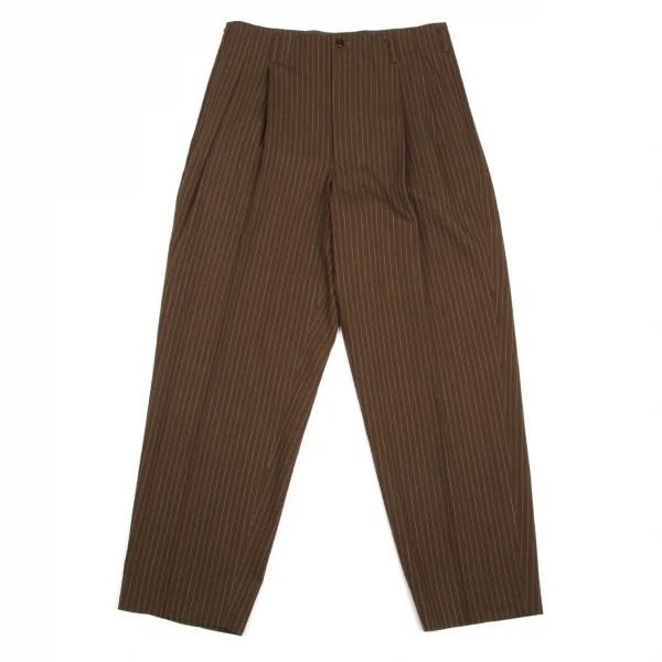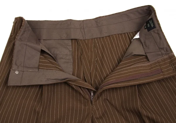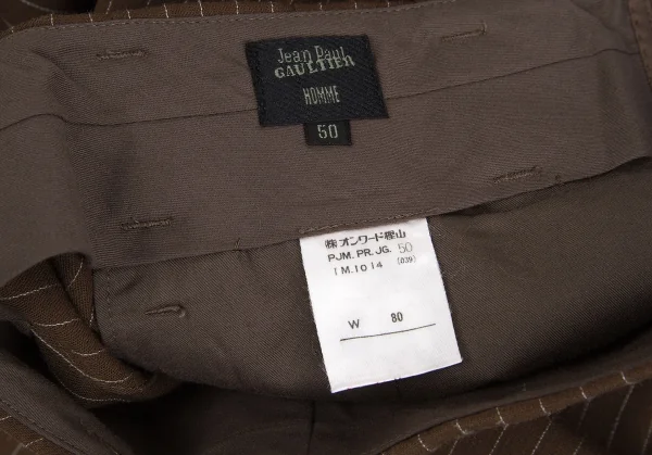 ジャンポールゴルチエ オムJean Paul GAULTIER HOMME ウールナイロンストライプツータックパンツ 茶白50