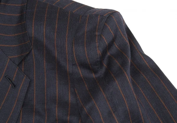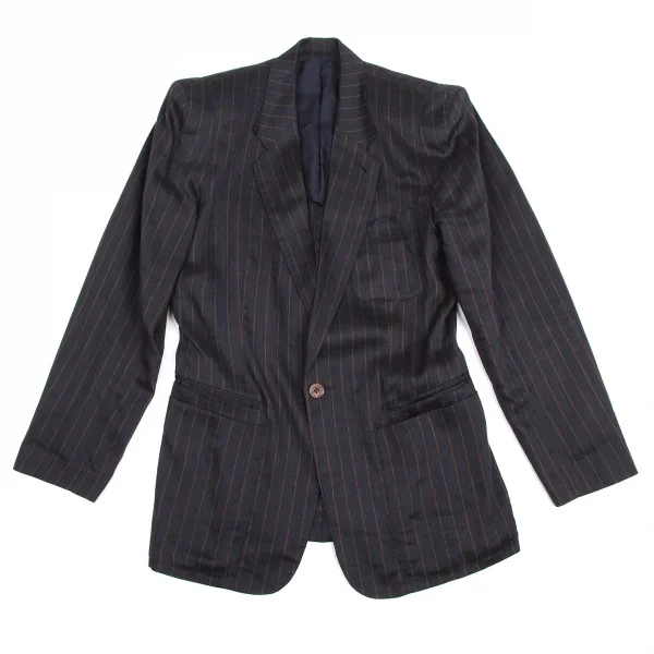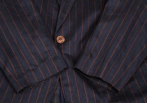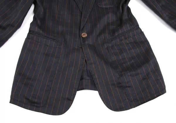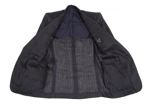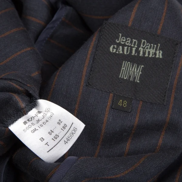 【SALE】ジャンポールゴルチエ オムJean Paul GAULTIER HOMME 混紡リネンストライプジャケット 紺茶48