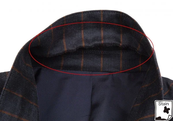 襟裏、袖裏に汚れあり。後身頃に擦れ、シミあり。(写真参照)その他に目立ったシミ、汚れ、ほつれ等なくいい状態です。クリーニング済み