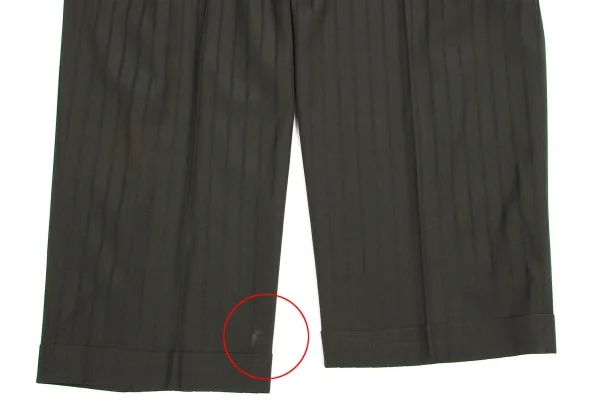 右足に薄シミ、後ろ左足裾に汚れあり(写真参照)。その他に目立ったシミ、汚れ、ほつれ等なくいい状態です。クリーニング済み