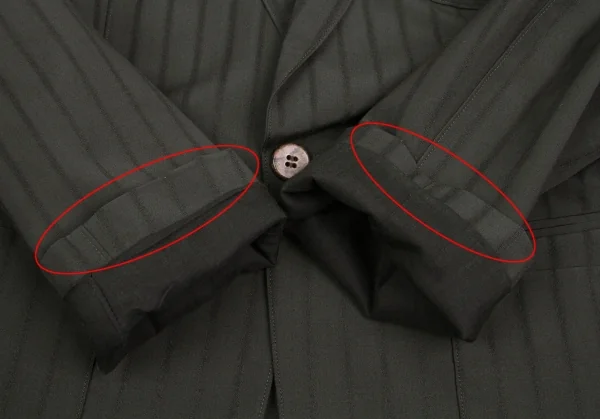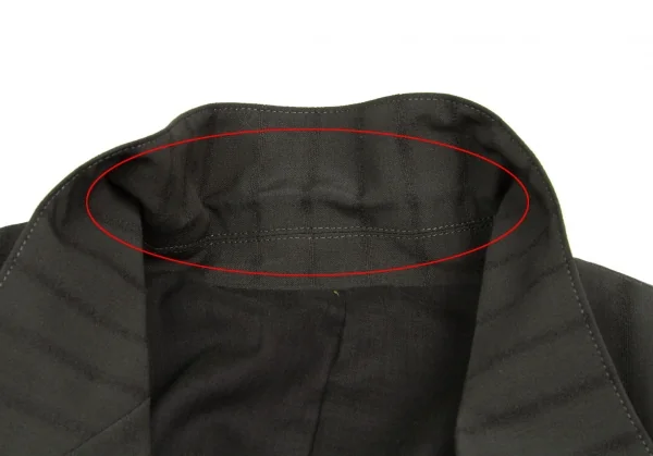 ジャケット 襟裏、袖裏に薄汚れあり。パンツ 右足に薄シミ、後ろ左足裾に汚れあり。(写真参照)その他に目立ったシミ、汚れ、ほつれ等なくいい状態です。クリーニング済み