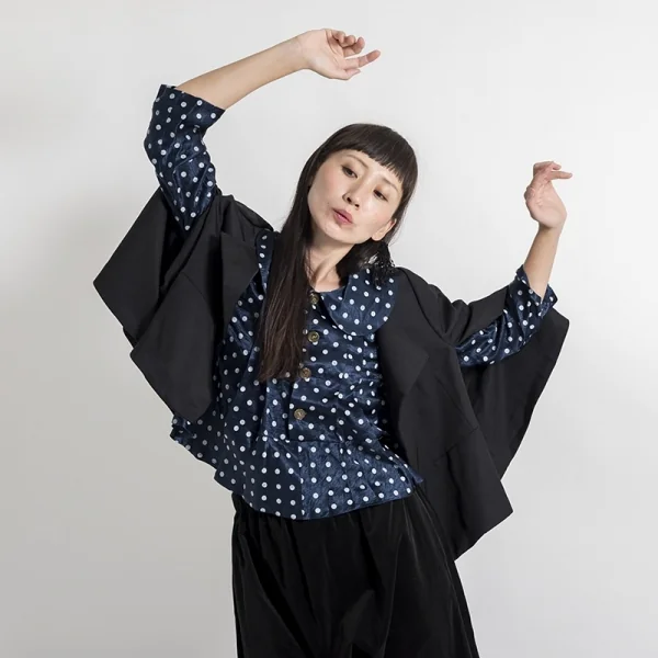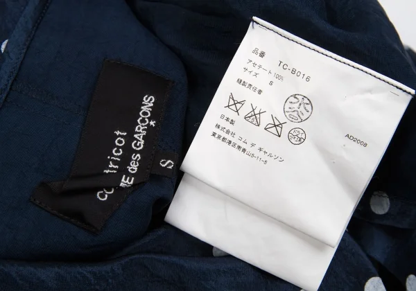 【SALE】トリコ コムデギャルソンtricot COMME des GARCONS アセテート水玉ラウンドカラープルオーバーシャツ 紺白S