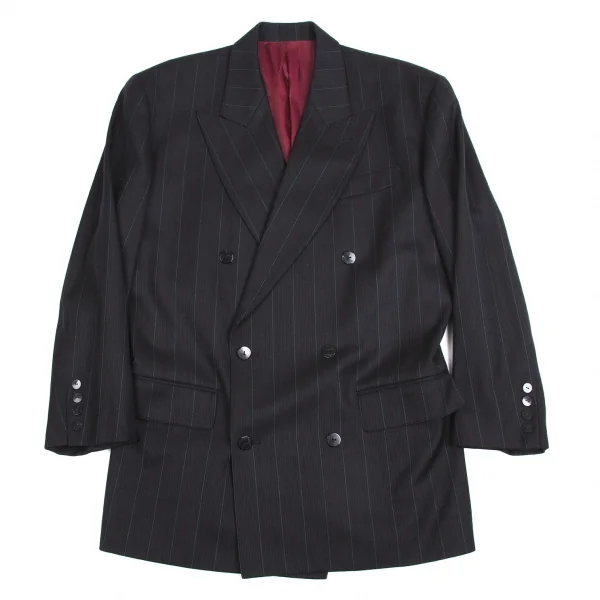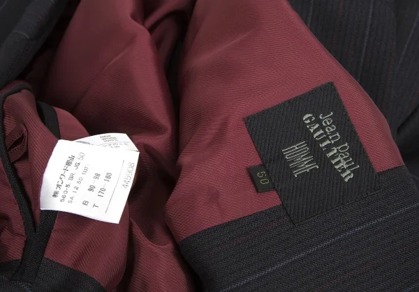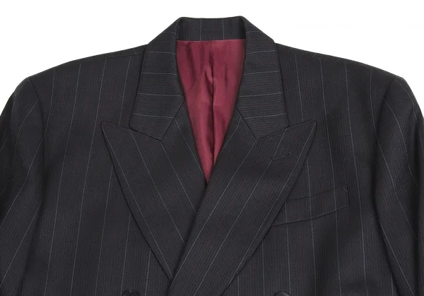 ジャンポールゴルチエ オムJean Paul GAULTIER HOMME ウールストライプピークドラペルダブルセットアップスーツ ブルーグレー50/48
