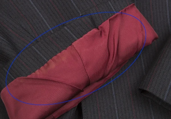 ジャケット 右袖裏にシミあり。パンツ ウエスト裏に汚れあり。(写真参照)その他に目立ったシミ、汚れ、ほつれ等なくいい状態です。クリーニング済み
