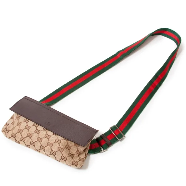 グッチGUCCI GGキャンバスウエストポーチ モカ茶緑赤